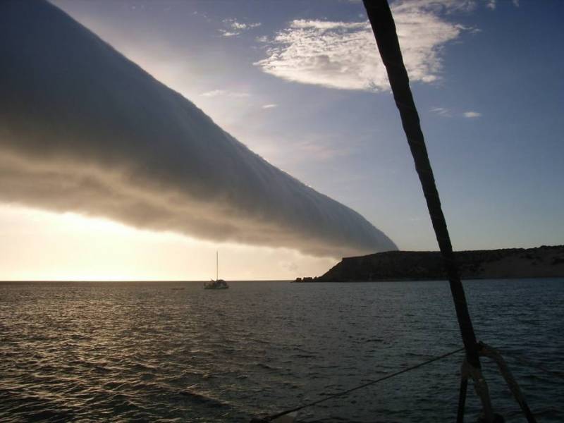 Облака "Утренняя глория" Как и почему возникли эти странные длинные облака, на этот вопрос пока точного ответа нет. Это — редкий вид облаков, известный как облака «Утренняя глория» (англ. Morning glory — «утреннее великолепие»). Они могут достигать в длину более тысячи километров и располагаются на высоте до двух километров. Облака представляют собой — «грозовой воротник» (roll cloud) наблюдаемый ежегодно весной в заливе Карпентария на севере Австралии и реже в других местах.